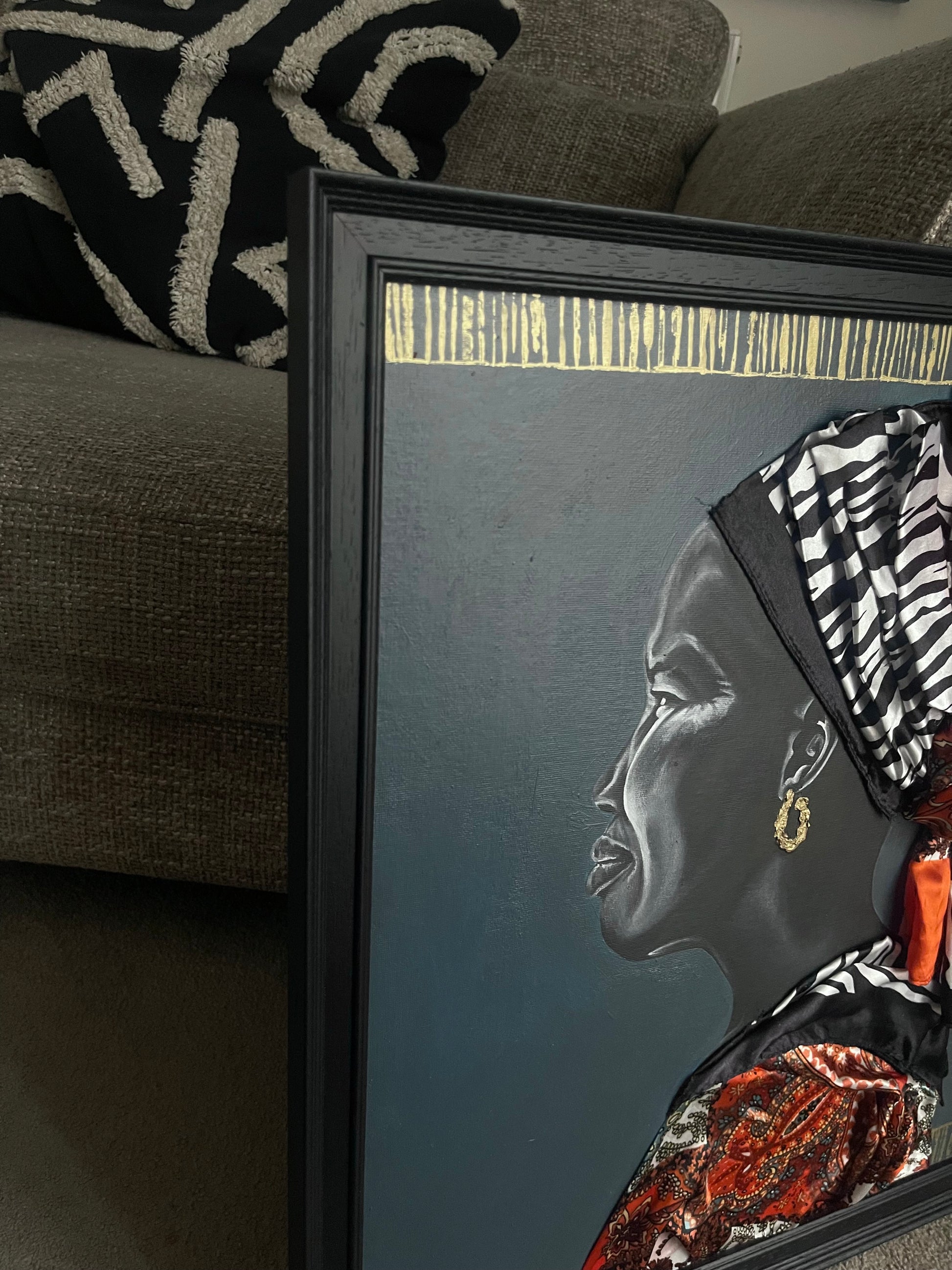 Frame: black wooden frame.